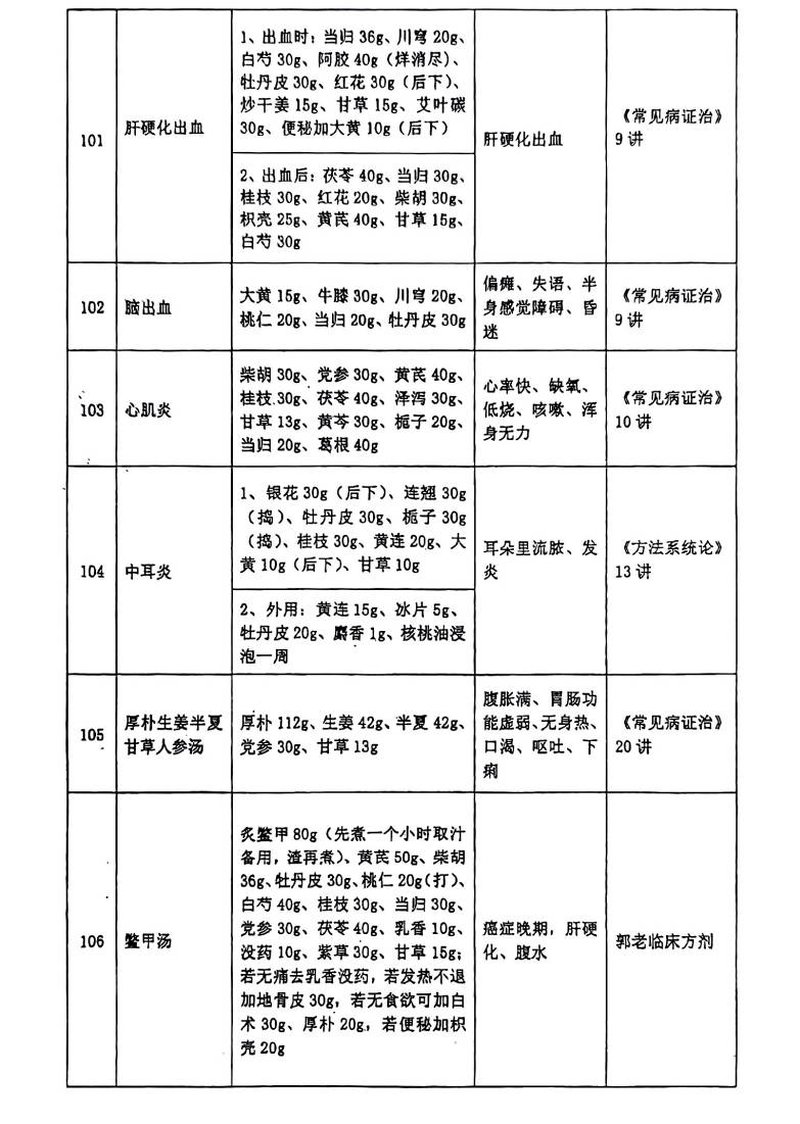 正文 郭生白实用方剂一览表 nieyuli98 V管理员 /2025-10-23/38阅读/0评论 1023 最近在看郭生白大爷的大医传承视频,被他的理论吸引了。突然想起以前网友们分享的郭生白的实用方剂一览表,所以就做成图片放到自己的笔记博客上面,方便自己用的时候查询、借鉴等。
